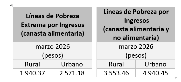 El Instituto Nacional de Estadística y Geografía (inegi) informó que en el tercer mes del año, los cambios porcentuales de las Líneas de Pobreza Extrema por Ingresos (LPEI), referentes a la canasta alimentaria, fueron de más 2.8 % en el ámbito rural y más de 2.2 % en el urbano.
